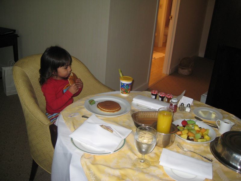 Visit to Chicago Dec 08 -- Sarina enjoyes pancakes at the 4 seasons!