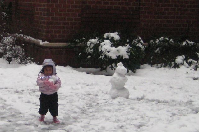 Our first SNOW of 2008 -- Sarina decided to take the little snowman home